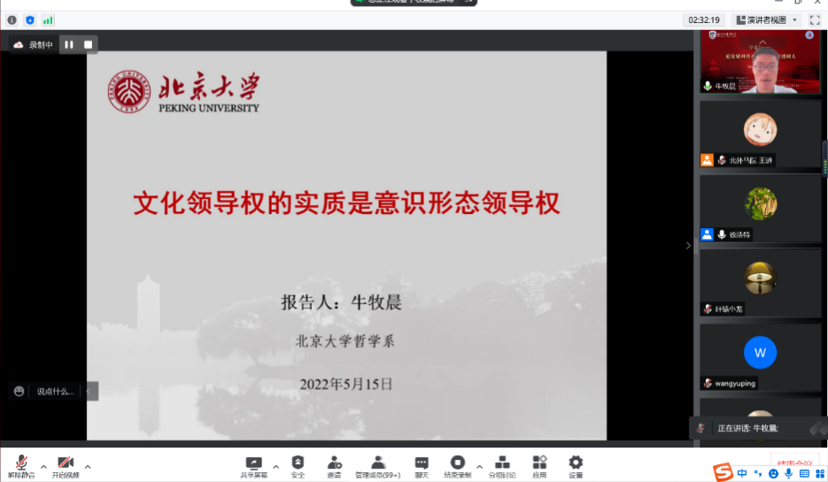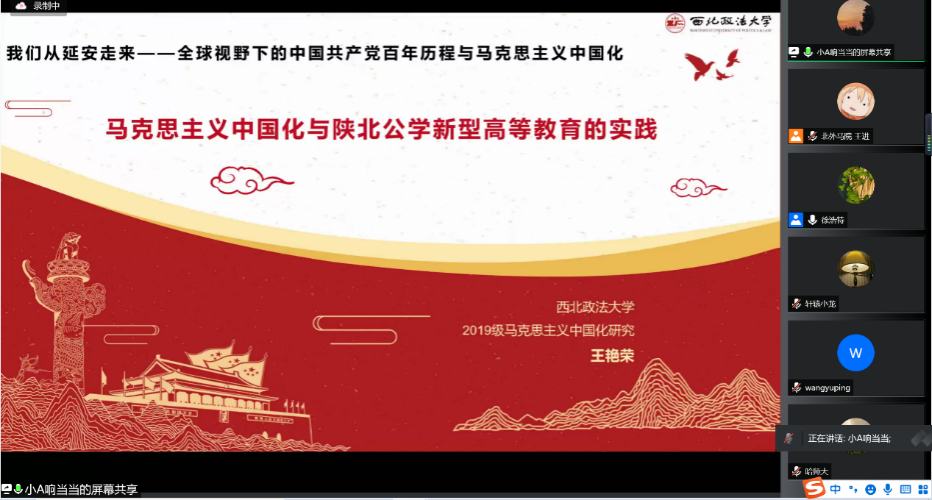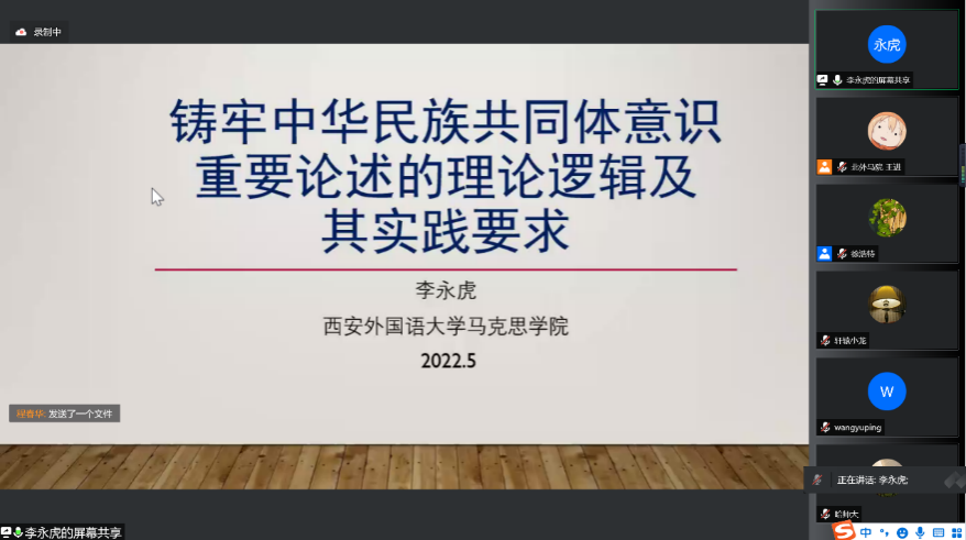 5月15日下午,“我们从延安走来——全球视野下的中国共产党百年历程与马克思主义中国化”学术研讨会分论坛“延安精神与新时代立德树人”在线上成功举行。中央民族大学pp电子游戏平台网站院长孙英教授、大连外国语大学pp电子游戏平台网站院长徐浩特教授分别主持了第一阶段与第二阶段的发言,校内外100余名专家学者及青年学生与会。