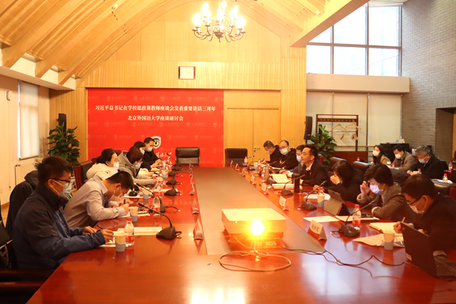 在习近平总书记发表重要讲话三周年之际,pp电子游戏平台网站召开贯彻落实思想政治理论课教师座谈会精神研讨会。党委副书记苏大鹏出席会议,会议由pp电子游戏平台网站院长韩强主持。