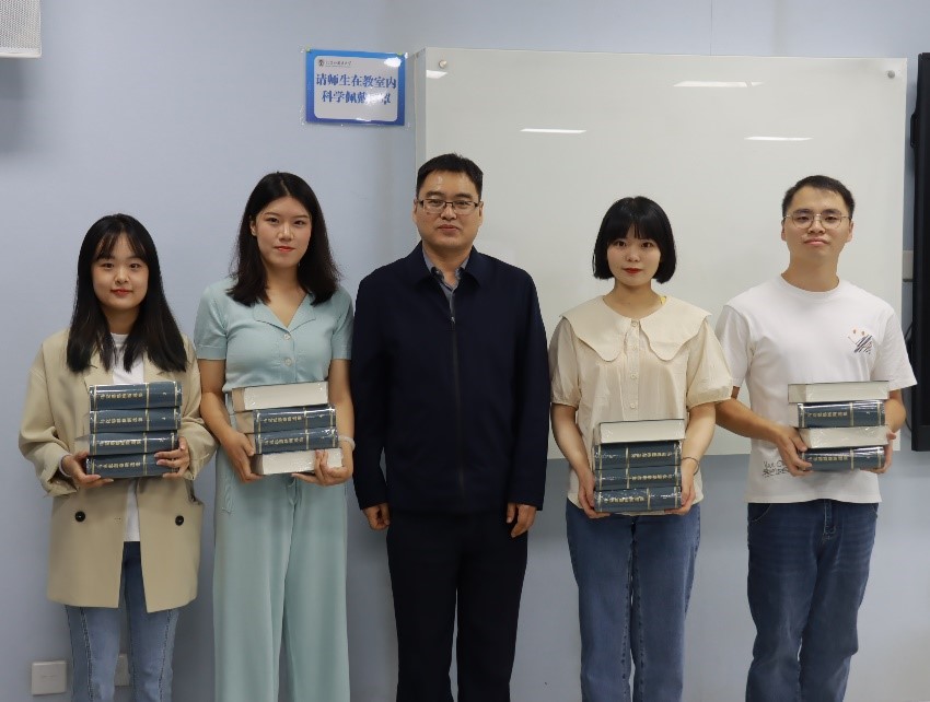 学院党总支书记祝和军为2022级新生赠书,他勉励同学们读原著、学原文、悟原理,夯实理论基础,同时勇于实践,把学问写在中国大地上。