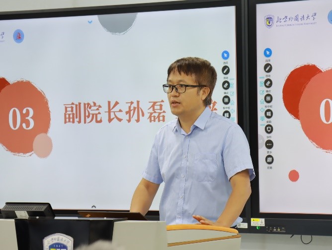 副院长孙磊向全体新生介绍学院研究生培养工作,他表示学院始终积极助力学生成长、成才,勉励同学们深入学术研究,发表学术成果,参与高水平学术论坛,努力实现个人价值和社会价值的有机统一,不断超越自我。接着,他希望各位新生在研究生期间既能做好个人的“一”,又能做好马院的“六十六分之一”,在北外马院度过一段充实美好的时光。