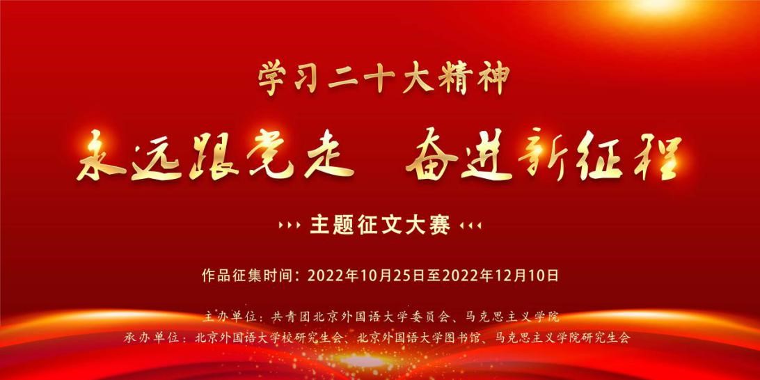 青春心向党,奋进新征程。为深入学习贯彻党的二十大重要讲话精神,进一步深化思想政治引领,引领北外学子坚定不移听党话、跟党走,努力成为有家国情怀、有全球视野、有专业本领的复合型人才,pp电子联合校团委共同举办“学习二十大精神·永远跟党走、奋进新征程”主题征文大赛,促进学生通过生动的语言文字表达对党的深厚情感、讴歌新时代取得的辉煌成就,充分展现pp电子学子善学习、找方向、勇担当的精神风貌,推动二十大精神学习交流。