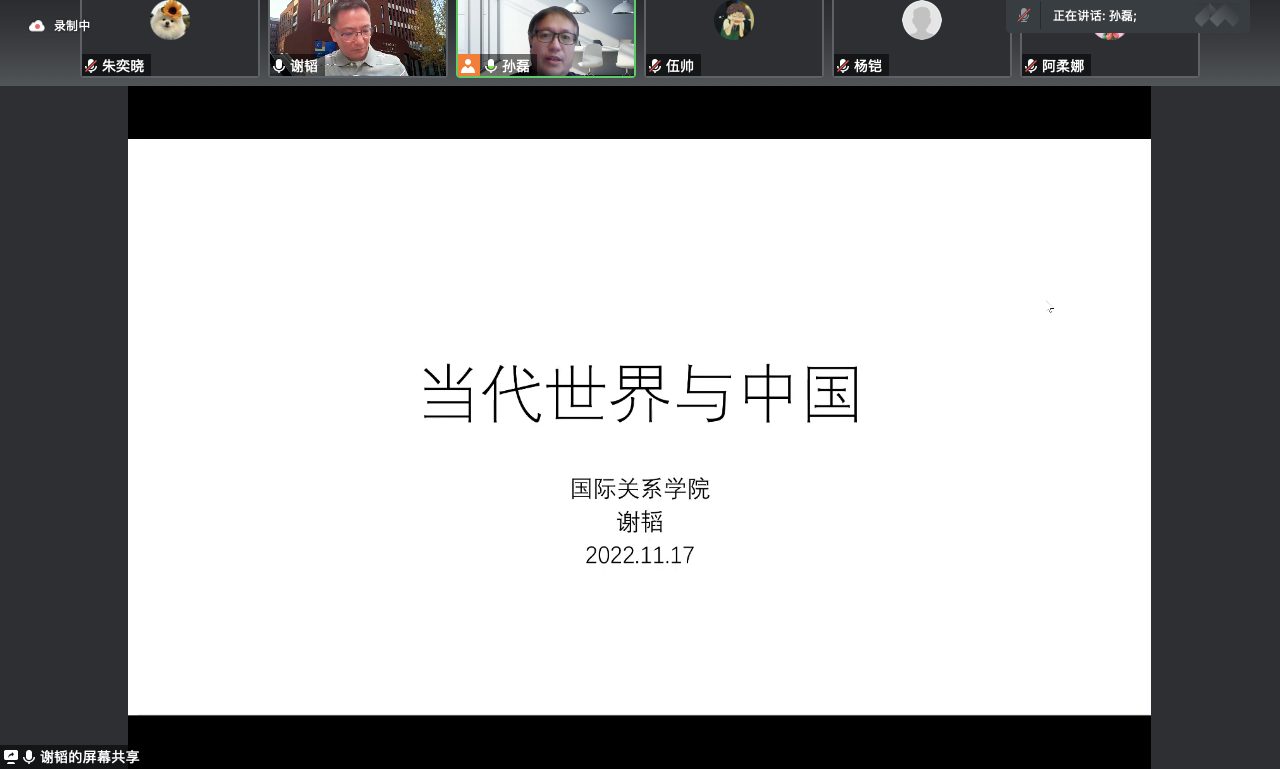 11月17日晚,北外马院马克思主义论坛第十六期举办。pp电子游戏平台网站国际关系学院院长谢韬教授以“当代世界和中国”为主题为马院师生做专题讲座。马克思主义学师生通过腾讯会议参加了本次活动,讲座由pp电子游戏平台网站副院长孙磊主持。