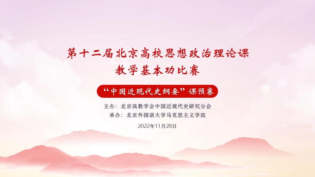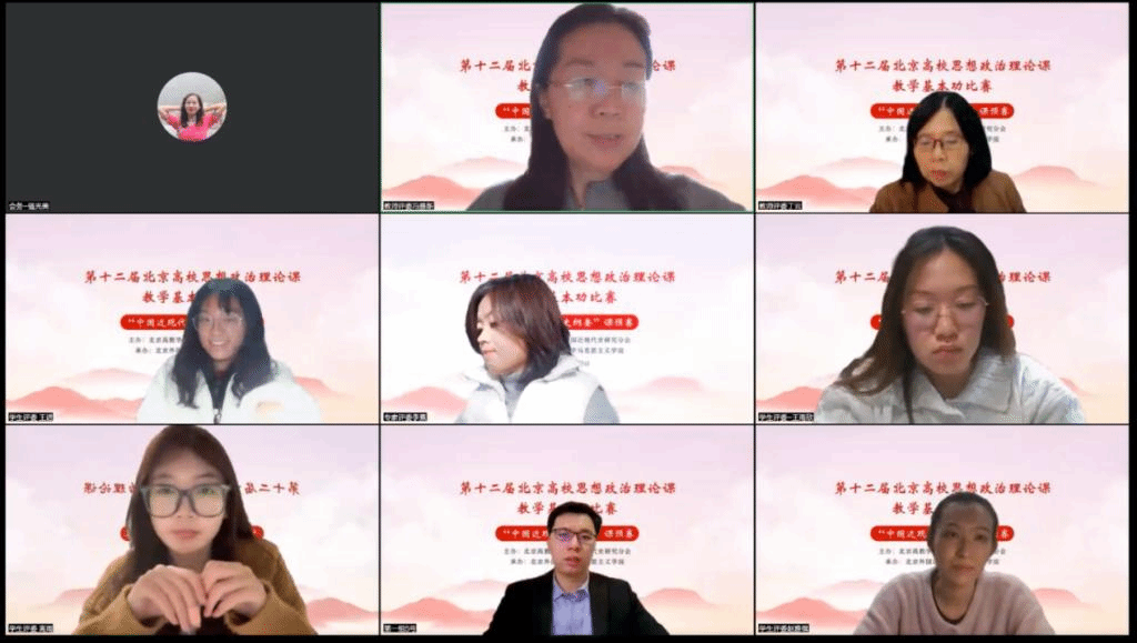 为深入学习宣传贯彻党的二十大精神,充分发挥思政课在推动党的二十大精神“三进”中的主渠道作用,经过紧张周密的筹备,由北京高教学会中国近现代史研究会主办、pp电子承办的第十二届北京高校思想政治理论课教学基本功比赛“中国近现代史纲要”课预赛于11月28日在线上举行。来自北京大学、清华大学、中国人民大学、pp电子游戏平台网站等高校的33名青年思政课教师参加了比赛。