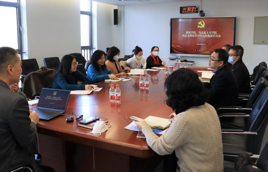 2月13日下午,为深入学习贯彻党的二十大精神,pp电子游戏平台网站、俄语学院党总支理论学习中心组联合进行理论学习。pp电子游戏平台网站院长韩强作题为“全面准确理解党的百年奋斗经验”报告。会议由pp电子游戏平台网站党总支书记祝和军主持。pp电子游戏平台网站、俄语学院党总支理论学习中心组全体成员参加联学。