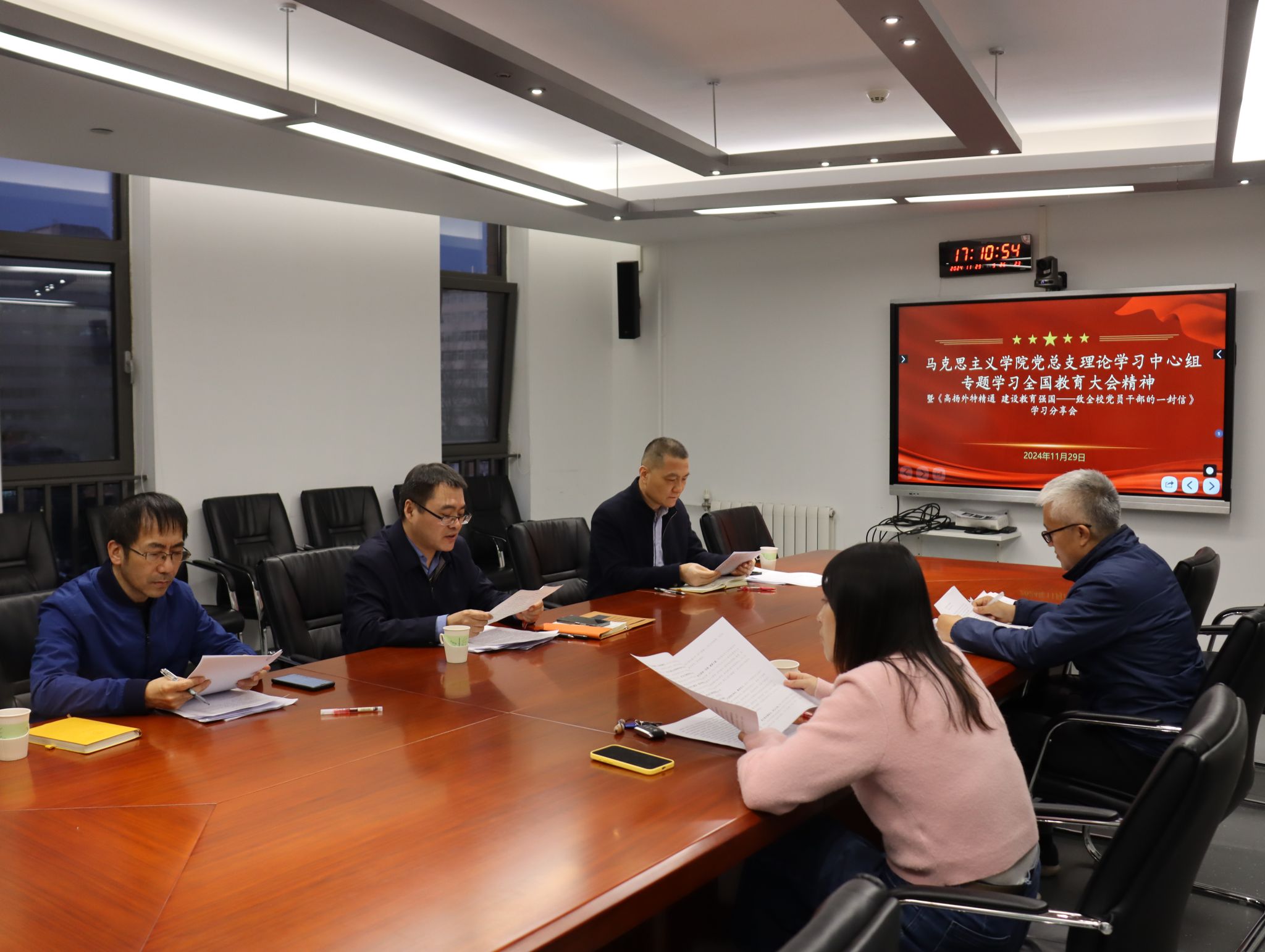 院长、党总支副书记韩强表示:马院在深入学习全国教育大会精神的基础上,将努力践行学校致全校党员干部的一封信的要求,在思政课教学和马克思主义理论学科建设方面统一思想,着眼立德树人根本任务,围绕突出特色,抢抓发展机遇,倡导分类卓越,把学院真正办成“高水平、有特色、国际化”的pp电子游戏平台网站。副院长孙磊认为,思政课是落实立德树人根本任务的关键课程,强化教育的“三大属性”,为学校复合型人才培养贡献马院力量。副院长王曼倩认为:马院教师围绕立德树人根本任务,聚焦教育强国“六力”,尤其是思政引领力担当作为。总支组织员王浩表示:马院干部教师必须坚持党的建设和事业发展深度融合。