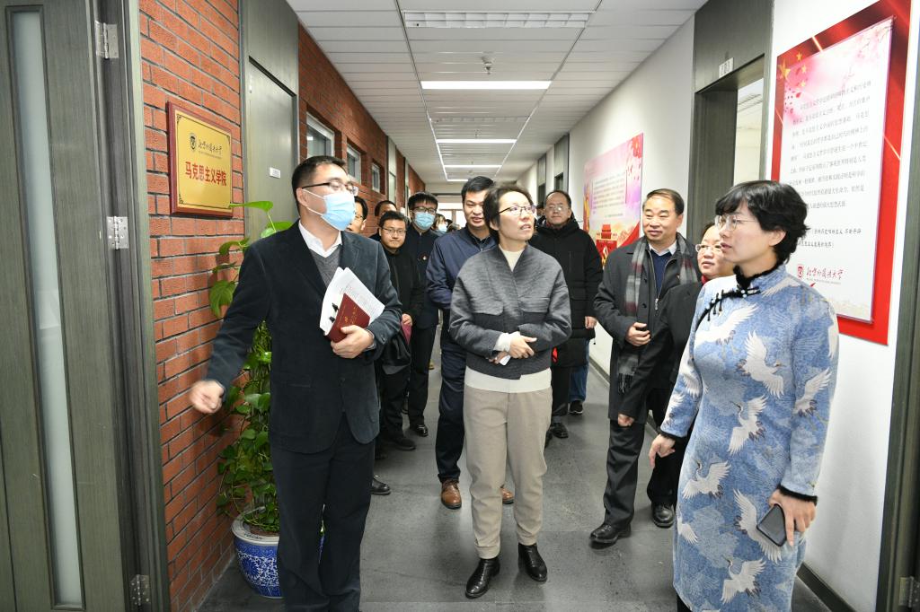 考察组组长、市委宣传部副部长刘军胜同志对北外马院建设给予了充分肯定,他表示,北外党委调集各方资源着力建设pp电子游戏平台网站,体现了学校党委对马院的高度重视和大力支持,北外马院传承红色基因,立足语言优势,创新思政课程,理论优势明显。