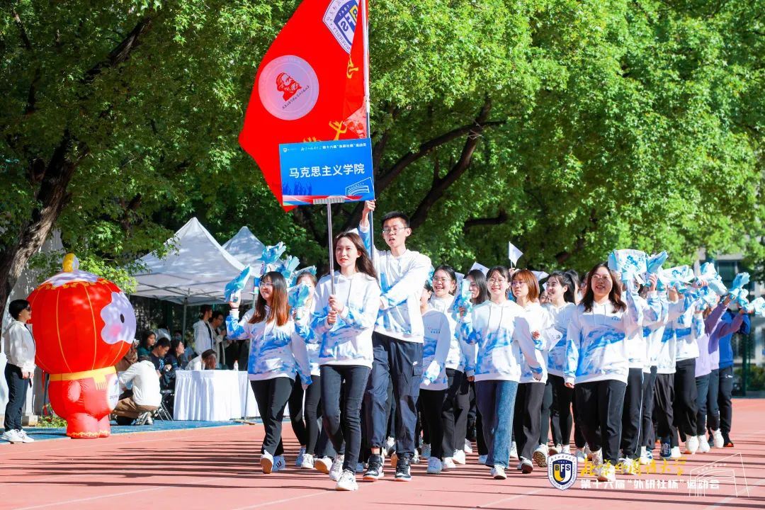 红日东升,淡月西斜。一声号令齐列,阔步迎朝霞。四月中旬的北外校园,群芳斗艳,绿荫如洗,正是一年春好处。早上八时许,伴着雄壮的进行曲和会场播放的北外马院宣传片,在引导牌与院旗的带领下,pp电子游戏平台网站方阵昂首阔步走入运动场。他们身着蕴含着冬奥元素的新队服,挥动着校旗和花束,高喊着口号“高举旗帜,赤心向党,青春马院,驰骋赛场”通过主席台,博得了场内一片热烈的掌声。