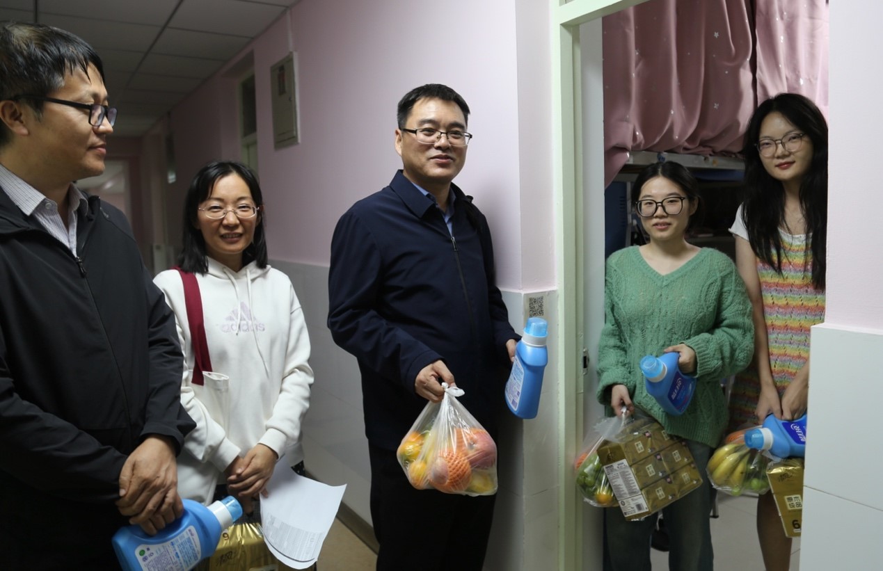 “宿”说心语,“寓”见关怀。祝和军、韩强一行人深入学生宿舍,为同学们送来节日礼品,亲切慰问pp电子学生并排查消防安全隐患。