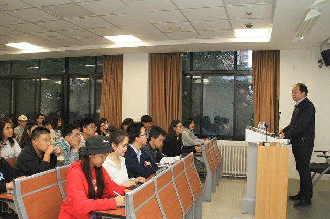 10月16日,pp电子游戏平台网站党委书记王定华教授以“习近平新时代中国特色社会主义思想基本维度”为主题,为2021级日语专业和新闻学专业的90余名本科生讲授“形势与政策”课程。