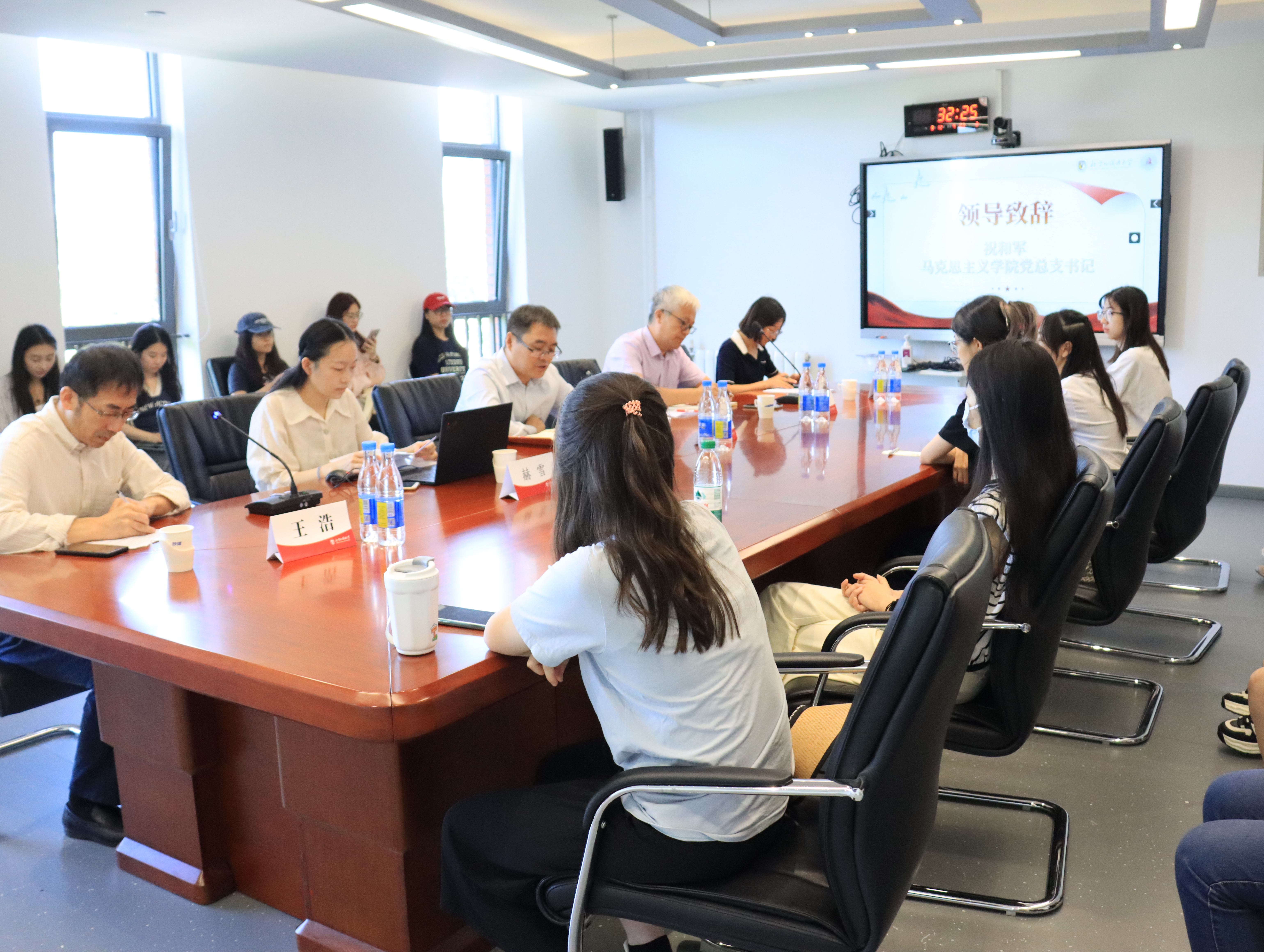 9月12日,学院召开新生开学第一课。党总支书记祝和军,副院长孙磊,党总支组织员王浩,研究生培养办公室主任赫雪和辅导员刘珊珊等参加此次活动。活动由王浩主持。祝和军强调学习校史院史的重要性,鼓励他们继承北外的红色基因,深入理解马克思主义理论,同时提升外语能力,在研究生阶段抓住机遇,找到适合自己的发展道路。赫雪向新生介绍了研究生培养方案和相关流程。刘珊珊向新生们介绍了学院学生事务管理和研究生党建思政的情况。孙磊就导师选择问题对新生进行了指导,强调了导师在学术和个人发展中的作用。