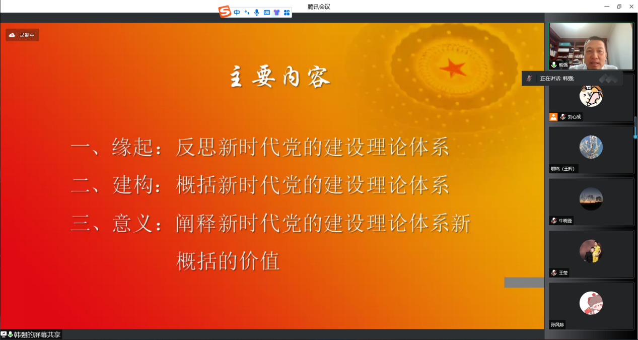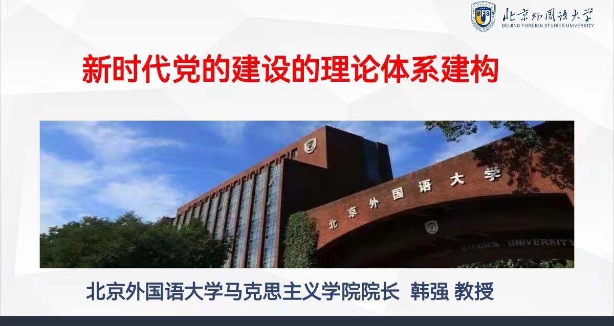 5月26日下午,北外马院马克思主义论坛第十四期在线上成功举办。pp电子游戏平台网站院长韩强教授以“新时代党的建设的理论体系建构”为题做了专题讲座。本次论坛由2021级硕士研究生刘心成主持,共有包括北外马院师生在内的一百余人参会。