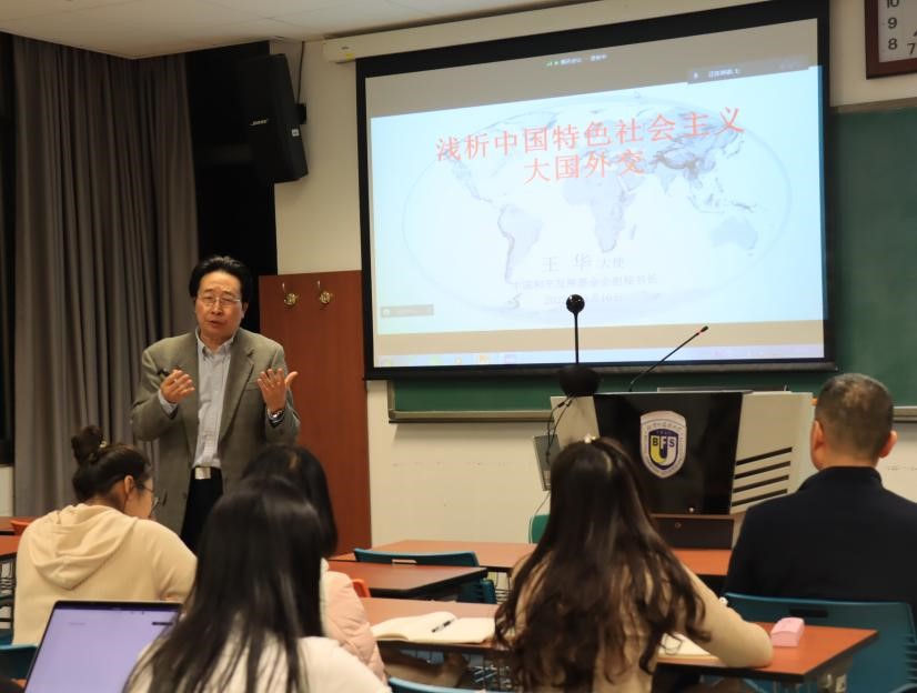 11月10日晚,第十一期pp电子游戏平台网站马克思主义讲堂在国际大厦302教室成功举办。中国前驻几内亚比绍共和国大使、中联部所属中国和平发展基金会副秘书长王华应邀为pp电子师生作了题为“浅析中国特色社会主义大国外交”的学术讲座。此次讲座采取线上线下会议相结合的形式,马院及校内外师生共同参加。讲座由pp电子游戏平台网站院长韩强主持。