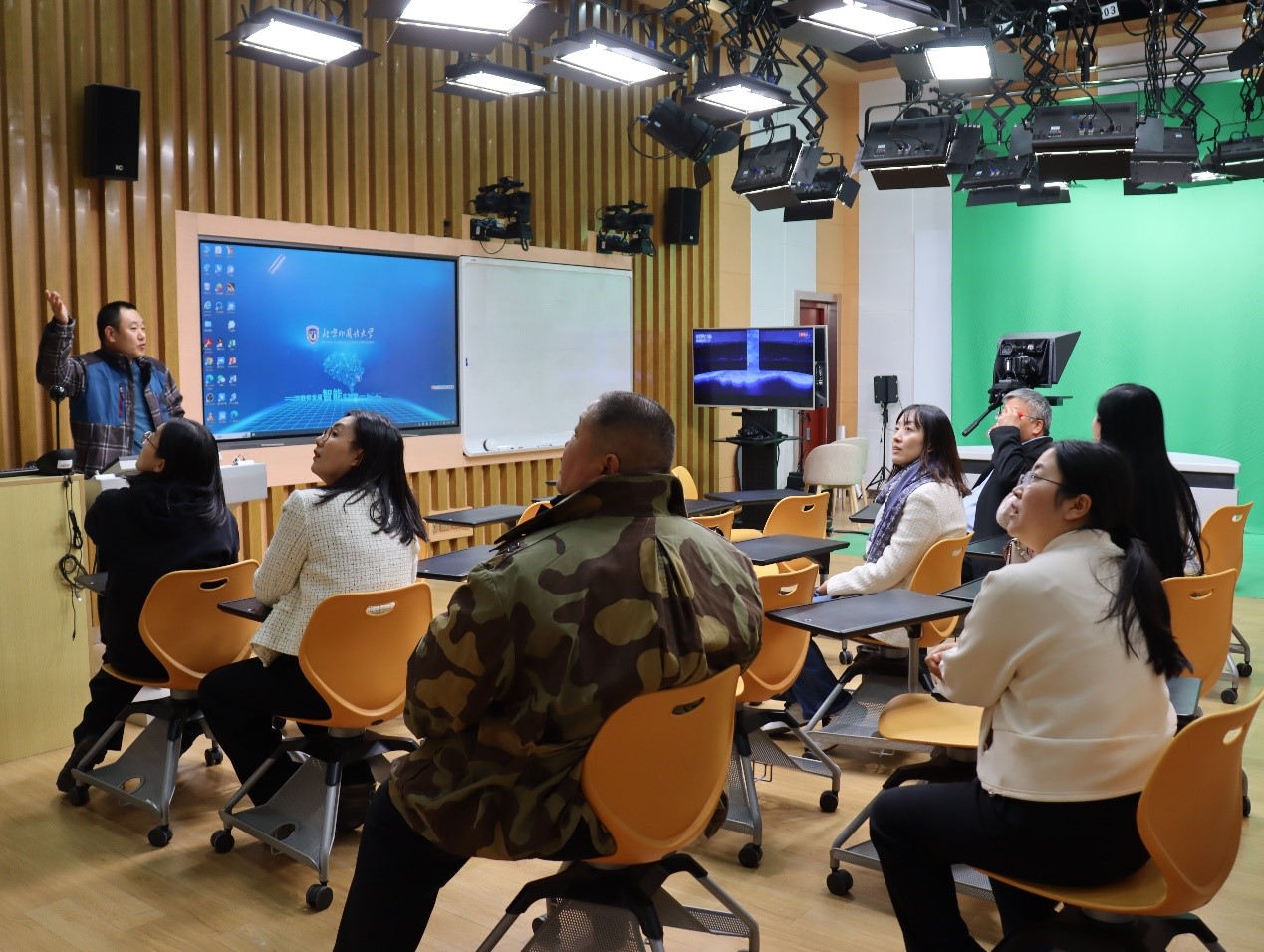 西交利物浦大学一行旁听了思政课教师李冉讲授的《毛泽东思想和中国特色社会主义理论体系概论》课程,参观了北外智慧教室及其他信息化设备,就思政课程的课程设置及教学特色、国际视野下的思政课程建设等问题与马院老师进行深入交流。