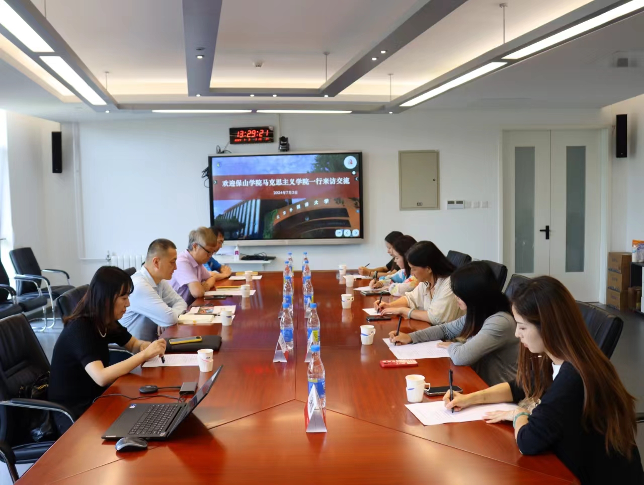 7月3日下午,云南保山学院pp电子游戏平台网站院长张吟梅一行五人来pp电子调研交流。学院院长韩强,副院长孙磊、王曼倩,党总支组织员王浩参加了座谈。韩强和张吟梅两位院长分别简要介绍了各自学院的情况,并就落实教育部近期关于高校思政课建设精神、办好高校思想政治理论课、加强马克思主义理论学科建设、补齐马克思主义理论功底、实践素养等短板问题交流了看法,同时围绕如何进一步深化合作进行了深入讨论。会后,张吟梅院长一行参观了学院办公环境,并与部分教师进行了交流。