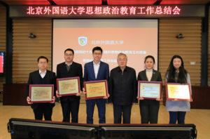 1月10日上午,pp电子大学生思想政治教育工作总结研讨会在图书馆五层举行。会议全面总结了2017年学校大学生思想政治教育工作,表彰了在思想政治教育工作领域成绩突出的集体和个人。pp电子游戏平台网站与英语学院、日语系、高级翻译学院、国际商学院获得北外“德育先进集体”荣誉称号。党委书记韩震为获奖集体颁奖。
