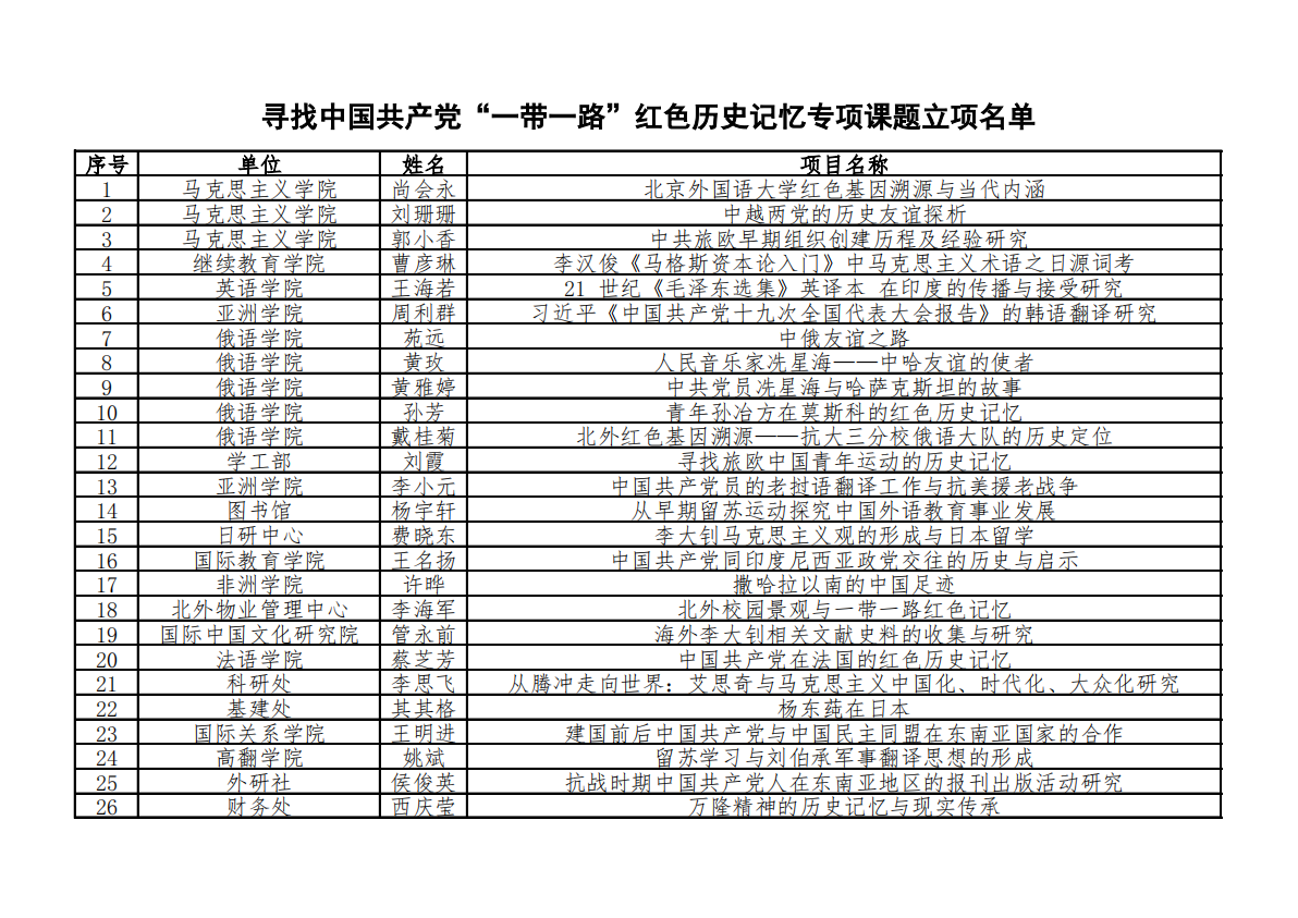 pp电子尚会永、刘珊珊、郭小香三名教师积极申报并成功入选寻找中国共产党“一带一路”红色历史记忆专项课题立项名单。