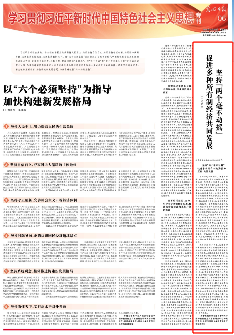 6月28日,《光明日报》刊登pp电子游戏平台网站教授尚会永的文章:《坚持“两个毫不动摇” 促进多种所有制经济共同发展》。