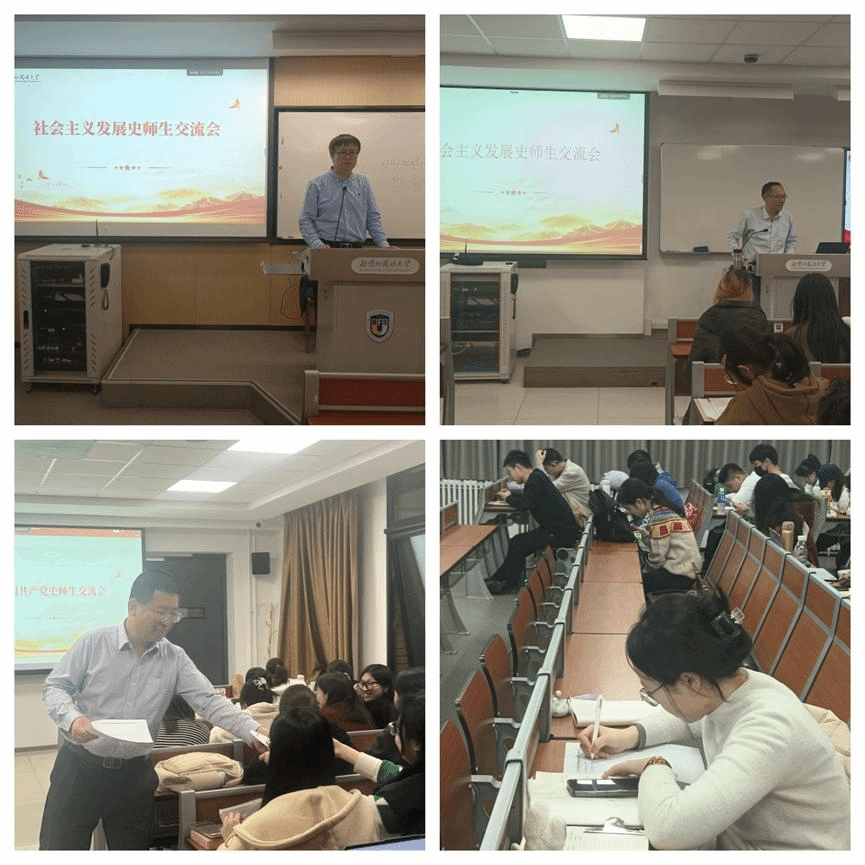 3月22日,pp电子游戏平台网站副院长王曼倩、副院长、社会主义发展史课程组组长孙磊、中国近现代史纲要教研室主任王成诚、思政课教师李永乐在逸夫楼与2023级本科生代表进行座谈。座谈采用随机分发思政课调查问卷和谈心谈话的形式进行,深入了解了学生在思政课上的收获、对思政课程建设的意见和建议。