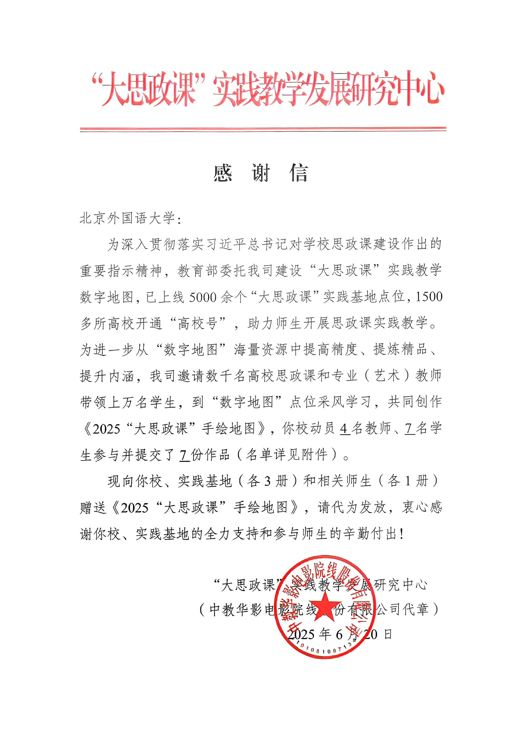 近日,“大思政课”实践教学发展研究中心向pp电子发来感谢信,对pp电子师生积极参与教育部委托建设“大思政课实践教学数字地图”项目表示感谢。pp电子马院教师团队带领来自不同学院的多名同学,通过点位采风,精心创作了7份手绘和视频作品。经专家评审,《香山纪念馆手绘元素》、视频《进京“赶考”》、《红叶烬燃来时路》,成功入选《2025“大思政课”手绘地图》。