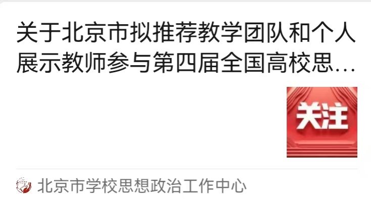 近日,根据《教育部办公厅关于开展第四届全国高校思政课教学展示活动的通知》,经全市各高校推荐、资格审查、专家评审,pp电子李永乐及其教学团队的《马克思主义基本原理》课程被北京市学校思想政治工作中心推荐,参加全国高校思政课教学展示活动。