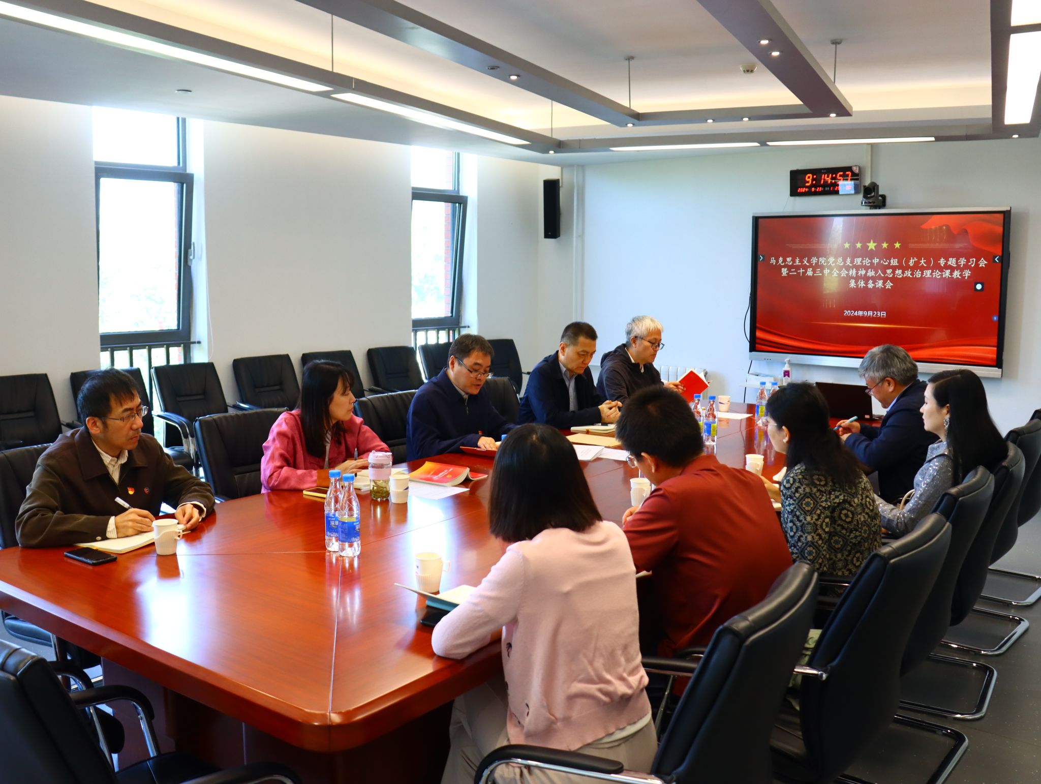 为学习贯彻党的二十届三中全会精神和全国教育大会精神,进一步推动党的二十届三中全会精神有机融入思政课教学,9月23日,pp电子游戏平台网站召开党总支理论中心组(扩大)专题学习会暨党的二十届三中全会精神融入思政课教学集体备课会。学院党政班子成员,理论学习中心组成员、各教研室主任、教工党支部书记、学生党支部书记参加会议。会议由党总支委员、副院长王曼倩主持。